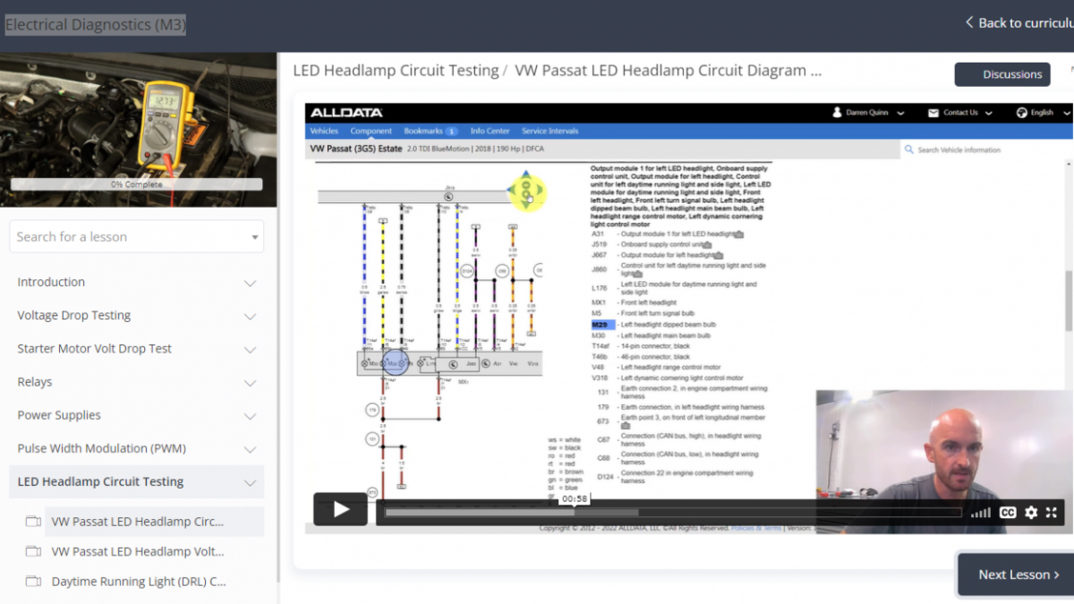 The lessons are included in the Electrical Diagnostics course in the Diagnostic Coach program